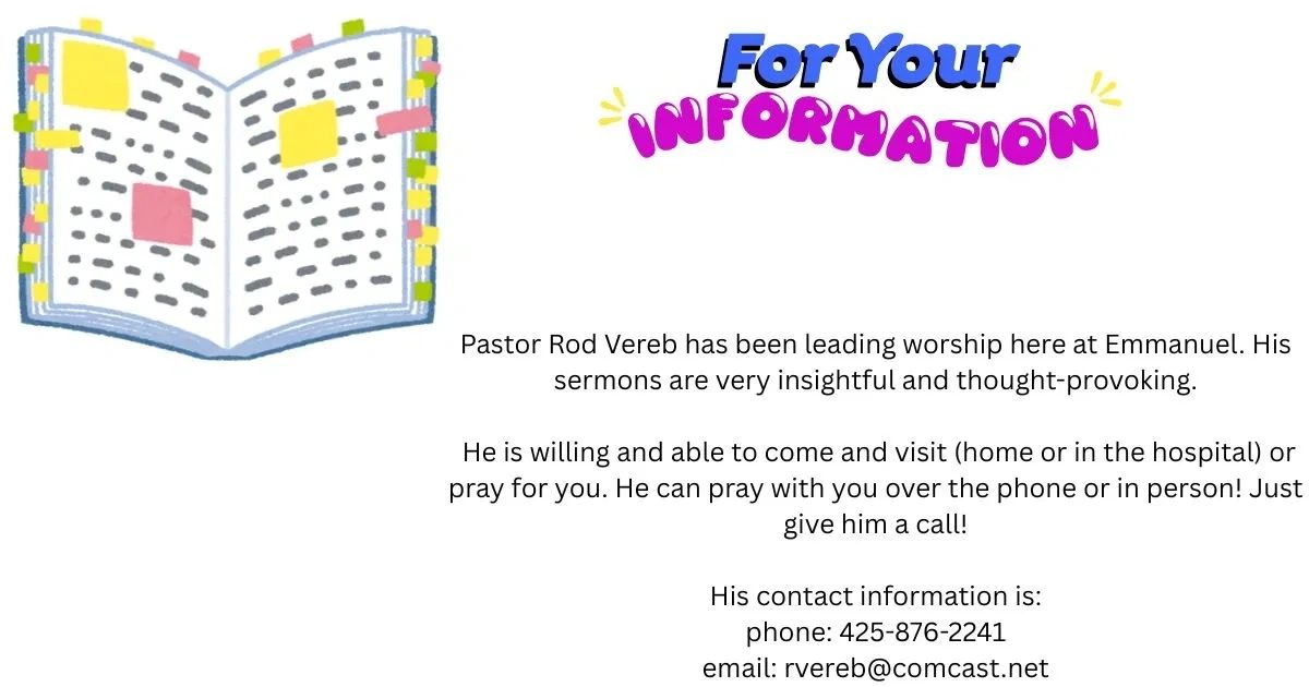 If you or anyone you know needs any form of help during these times, please call Pastor Rod. The church message machine is checked regularly. However, you can also contact the pastors directly.